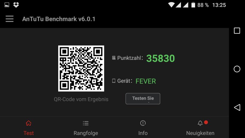 Setzte Wiko zuletzt vermehrt auf Prozessoren der Snapdragon-Reihe von Qualcomm, kommt im Wiko FEVER 4G wieder eine alte Tugend zum Einsatz und das ist eine CPU aus dem Hause MediaTek. Konkret handelt es sich um einen MT6753, dessen acht Cortex A53 Kerne mit bis zu 1,3 GHz zu Werke gehen. Bäume ausreißen kann das Smartphone zwar nicht, aber die im AnTuTu Benchmark erzielten 35.830 Punkte müssen sich auch nicht zwangsläufig verstecken.