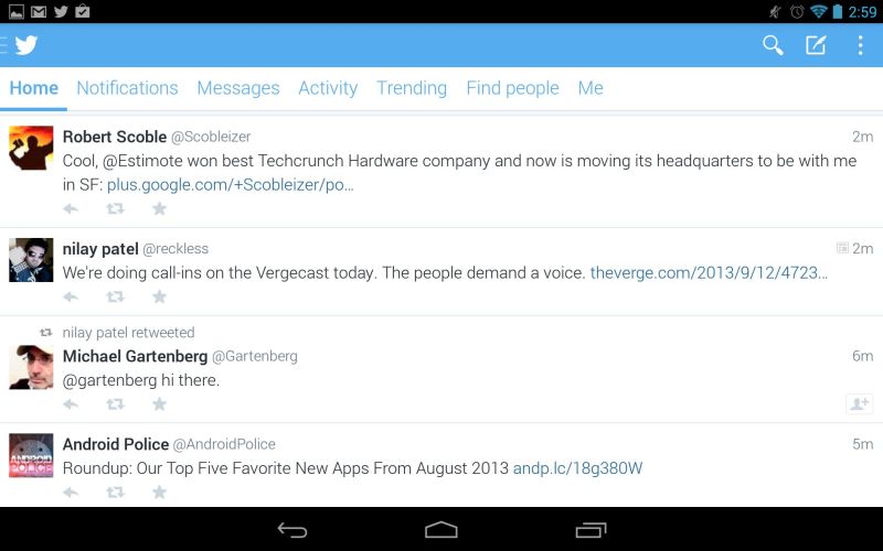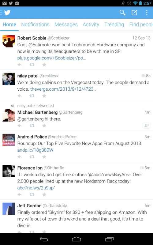 Eines der wirklich neuen Features des Google Play Store, die während der großen Keynote zur Google I/O 2013 vorgestellt wurden, ist die sogenannte Beta-Funktion gewesen. Bei dieser Funktion kann man sich mit seinem Google-Konto bei Entwicklern für ein Beta-Programm anmelden, um auf diese Weite aktiver in die Entwicklung seiner Liebings-Apps eingreifen zu können. Das Feature jedenfalls scheint sehr gut angenommen zu werden von den Entwicklern, denn Twitter hat an die ersten Beta-Tester eine neue Version verteilt und die hat es echt in sich. Und nein, es handelt sich dabei nicht um die Tablet-Version, wie sie die Kollegen vom neuen Galaxy Note 10.1 auf der IFA 2013 „gemoppst“ haben.