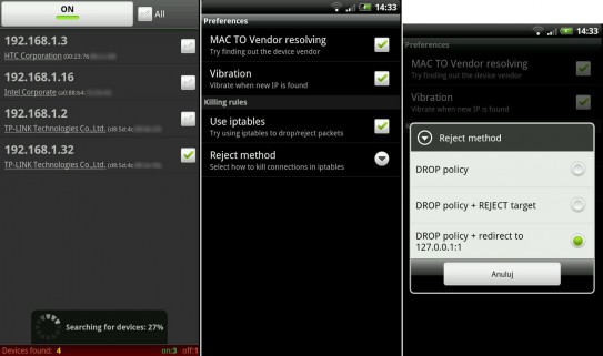 Mit WiFiKill ist das jedenfalls kein allzu großes Problem mehr, denn die Android App zeigt alle in das WLAN Netzwerk angemeldeten Clients an, sogar den Hersteller des Gerätes kann man sehen. Auf diesem Wege lassen sich unbekannte, unliebsame und allerlei andere unerwünschte Teilnehmer im eigenen WLAN kicken, um wieder die volle Bandbreite für sich zur Verfügung zu haben.