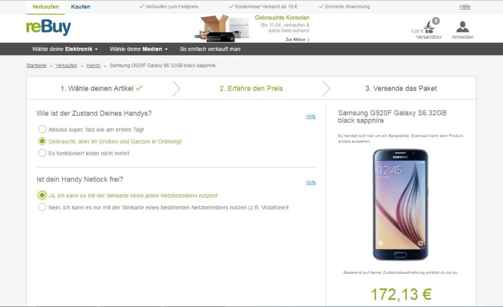 Hinweis: Auch wenn rebuy und andere Anbieter einen Preis anzeigen, muss dieser noch lange nicht auch tatsächlich ausgezahlt werden. Vielmehr handelt es sich dabei um einen Preisvorschlag, der bei einer Überprüfung des vorher eingeschickten Gerätes bestätigt und zu einem bindenden Angebot wird oder eben nicht. Falls ja gibt es den ermittelten Betrag auf die anzugebenden Bankdaten, ansonsten ist der ausgezahlte Betrag geringer.