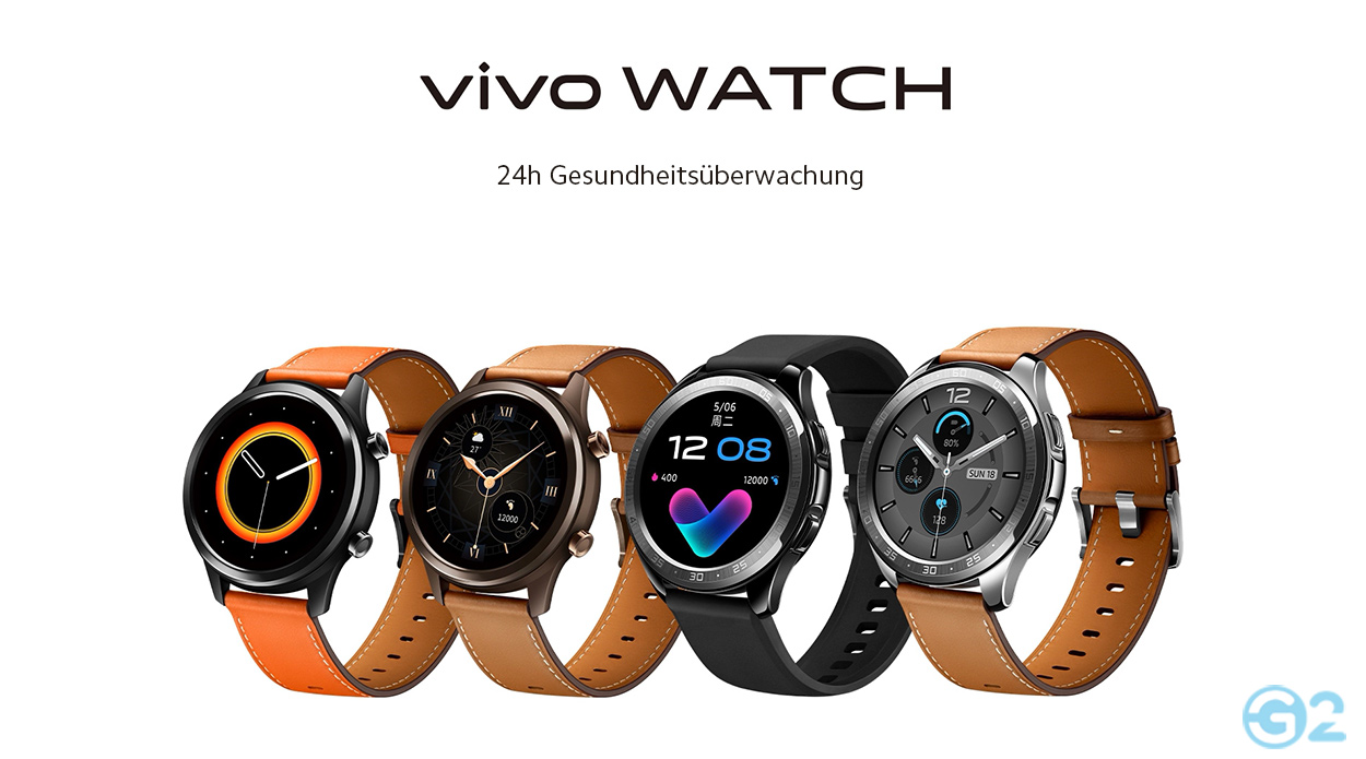 Denn laut Vivo bietet die smarte Uhr ein 1,19, beziehungsweise 1,39 Zoll großes AMOLED-Display mit einer Auflösung 390 x 390 und 454 x 454 Pixeln. Eigentlich selbstredend – der Vollständig halber aber erwähnt – unterstützt die Vivo Watch das Tracken von Sportarten wie Laufen, Schwimmen (5 ATM), Radfahren und Indoor-Aktivitäten. Dabei kann die Herzfrequenz als auch die Sauerstoffsättigung gemessen werden. An Bord der Uhr die Jovi-Sprachsteuerung und ein GPS- als auch NFC-Chip. Selbstredend ist auch der Empfang von eingehenden Benachrichtigungen durch das gekoppelte iOS- oder Android-Smartphone möglich.