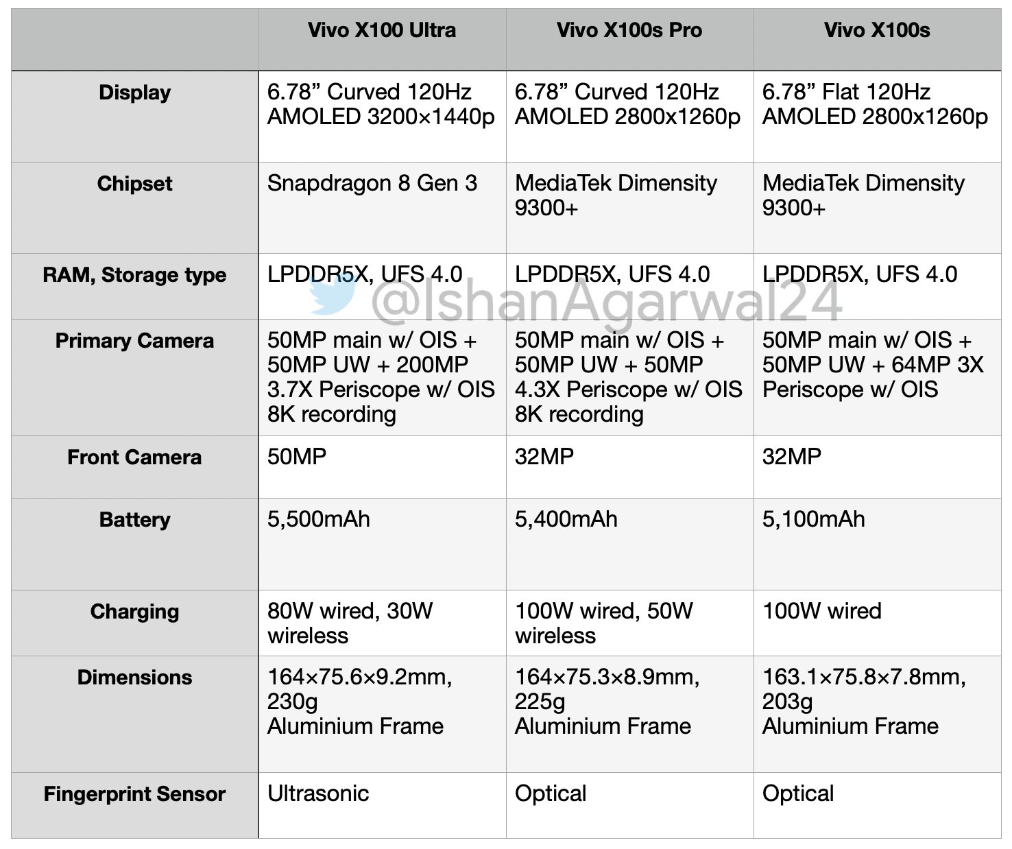 Neben den vom Vivo-Vizepräsident Jia Jingdong persönlich bereits veröffentlichten Hands-On-Bildern sind im chinesischen Netzwerk Sina Weibo und auf X (ehemals Twitter) von dem Leaker Ishan Agarwal auch schon fast alle Spezifikationen des neuen Zeiss-Kamera-Flaggschiffs durchgesickert. Die am Ende des Beitrages eingebundene Vergleichstabelle zeigt die Unterschiede zwischen dem Vivo X100 Ultra, X100s Pro und X100s deutlich auf. Insbesondere setzt das Vivo X100 Ultra als einziges Modell der X100-Serie auf den Snapdragon 8 Gen 3, wie auch die ersten folgenden Hands-On-Bilder dokumentieren.