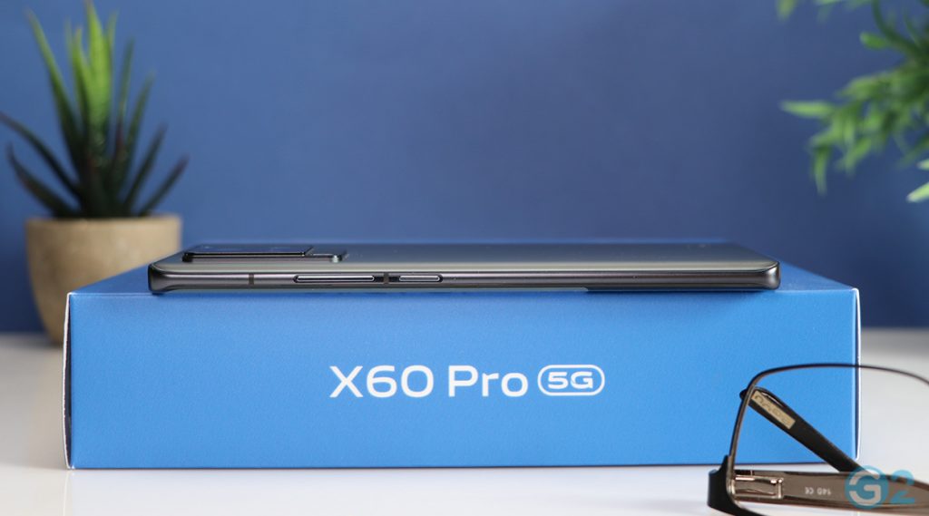 Das Vivo X60 Pro kommt wie schon sein Vorgänger sehr gediegen als auch sachlich daher. Gleich beim Erstkontakt wird haptisch das schlanke Gehäuse von gerade einmal 158,57 x 73,24 x 7,59 Millimeter bei einem Gewicht von angenehmen 177 Gramm deutlich. Klare Kanten, wohl positionierte Tasten an der rechten Seite mit einem guten Druckpunkt. Der Power- und Standby-Button ist geriffelt, damit er sich auch auf Gefühlsebene von der Lautstärketaste unterscheiden lässt.
