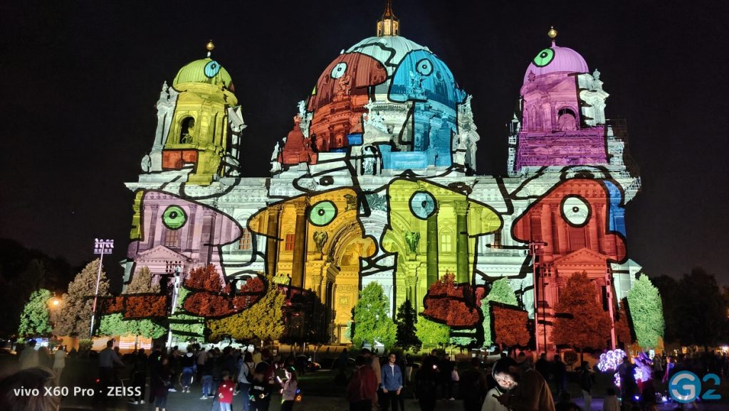 Wenn die Fotos fast schon zu stark belichtet wirken, empfiehlt es sich von dem Nacht- zum Standard-Modus zu wechseln. Meist werden die Aufnahmen hier noch besser. Zumal wir bei unseren „Festival of Lights“-Fotos mit ausreichend Licht eher weniger Probleme hatten.