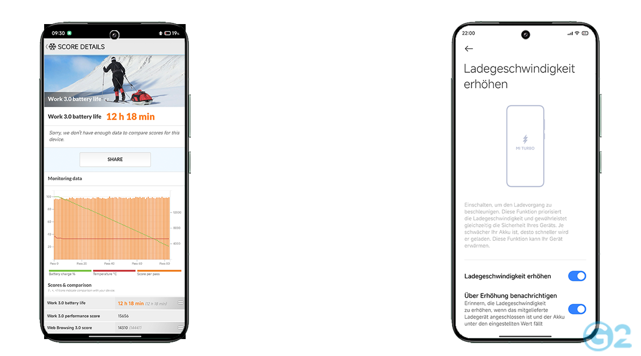 Der „PC Mark Work 3.0“-Batterietest bestätigt diesen Eindruck. Das Xiaomi 14 Ultra liefert mit 5.300 mAh eine beeindruckende Betriebsdauer von 12 Stunden und 18 Minuten bei 200 Nits Helligkeit, aktiviertem Flugmodus und einer Bildwiederholrate von 120 Hertz. Ist jetzt nicht so der Burner? Doch wenn ich Euch noch darüber informiere dass ich die maximale Auflösung von 3.200 x 1.440 Pixel verwendet habe.