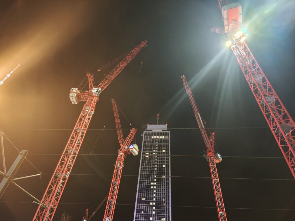 Der Nachtmodus des Xiaomi Mix Flip zeigt sich wenig empfindlich und erfordert nur selten eine Belichtungszeit von ein bis zwei Sekunden. Die meisten Aufnahmen gelingen direkt und überzeugen mit präziser Belichtung. Minimales Rauschen, ein guter Dynamikumfang und ausgewogene Farben machen die Nachtaufnahmen des Xiaomi Mix Flip zu einer zuverlässigen Wahl. Außer Ihr fotografiert mal direkt in die Bauscheinwerfer, wie bei meinem Negativbeispiel der vier Baukräne am Alexanderplatz. Das wird Euch mit unschönen Flares gedankt.