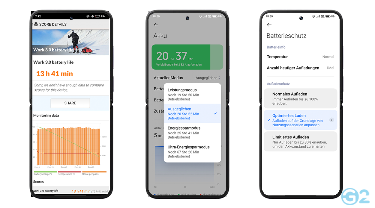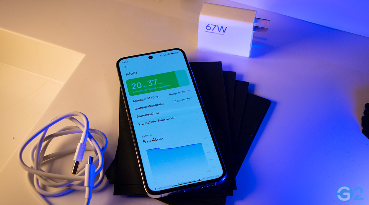Im praktischen Einsatz erreichten wir bei moderater Nutzung etwa 5 bis 6 Stunden DOT (Display-On-Time) über zwei Tage hinweg. Allerdings musste das Gerät bereits vor dem zweiten Abend wieder an die Steckdose. Das sind im Allgemeinen keine Rekordwerte. Im Gegenteil: Das Razr 50 Ultra schaffte annähernd die gleichen Werte mit einem deutlich kleineren Akku. Hier muss Xiaomi auf jeden Fall noch softwareseitig nachsteuern.